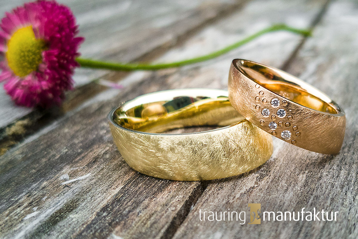 Dann seid ihr bei uns in der trauringmanufaktur genau richtig. Denn wir fertigen für euch individuelle Eheringe in verschiedenen Stilrichtungen von Hand an. Dabei könnt ihr gemeinsam mit uns eure persönlichen Trauringe entwerfen, planen und gestalten. Alle Trauringe sind Unikate und entstehen mit großer Sorgfalt und Liebe zum Detail.